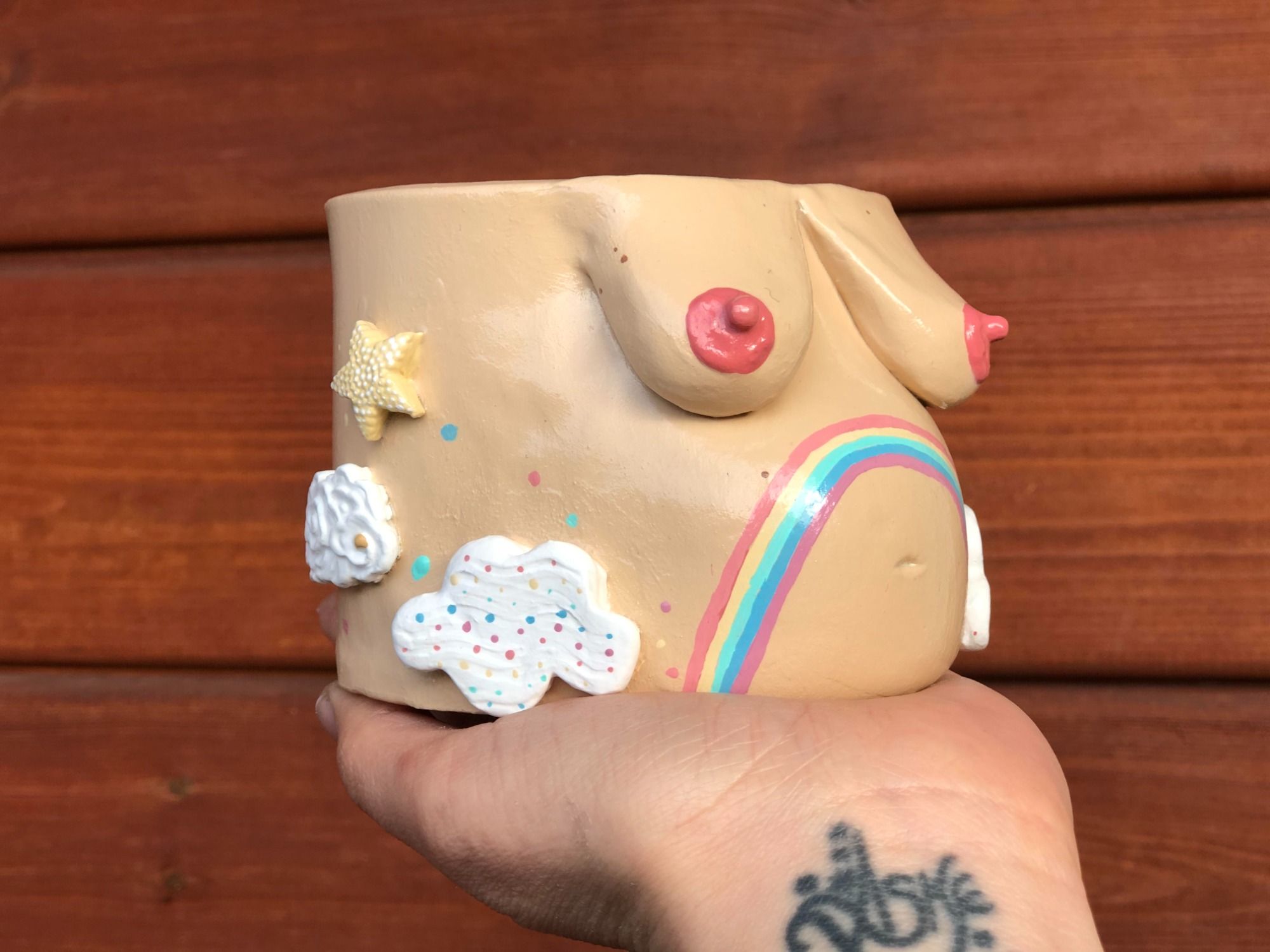 Desde las cubremacetas de arcilla de secado al aire hasta las tazas con pechos de mujer, cada pieza es única y está hecha con amor y cuidado por mí misma.